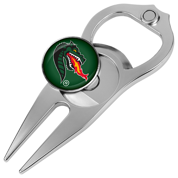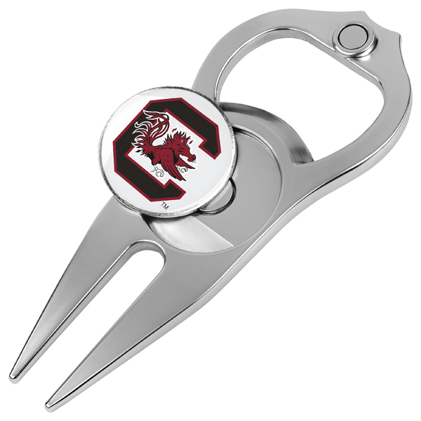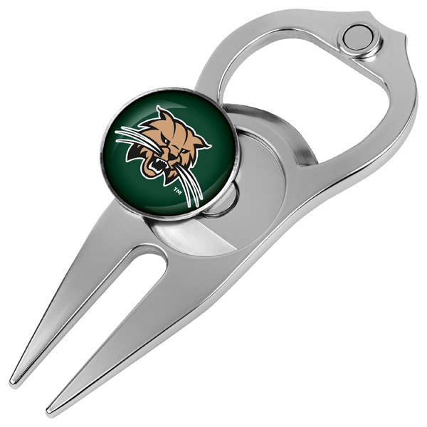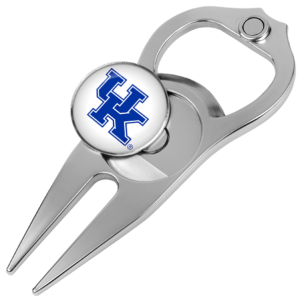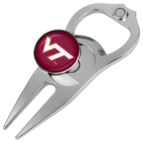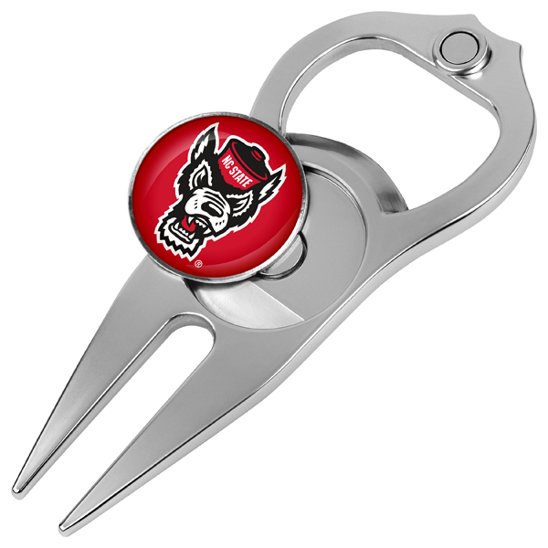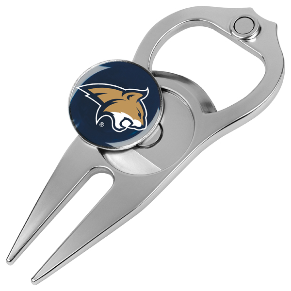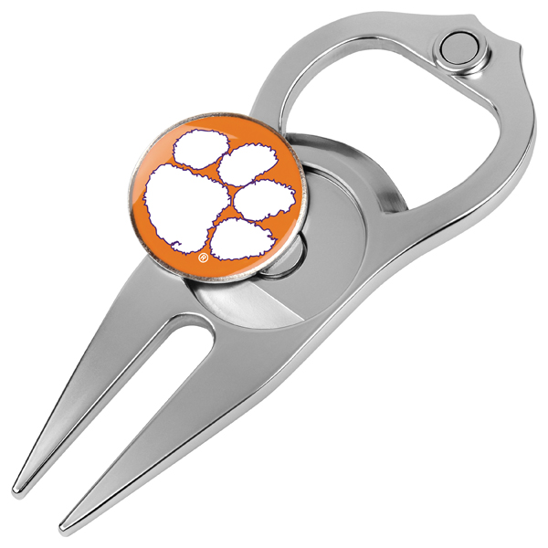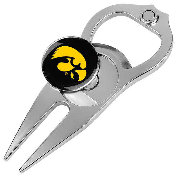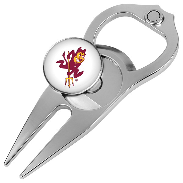 The Hat Trick Divot Tool is customized with an officially licensed magetic team ball marker with added bottle cap opener and retainer. You can even rest your club on it! Constructed from an all-metal design, the Hat Trick Divot Tool has a matte nickel finish. The top of the divot tool has a second magnet that retains the bottle cap to the tool when opening your beverage.