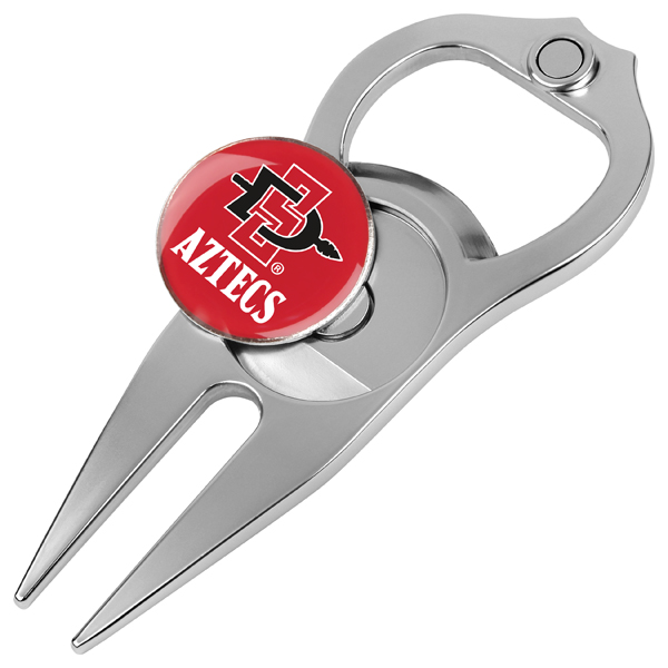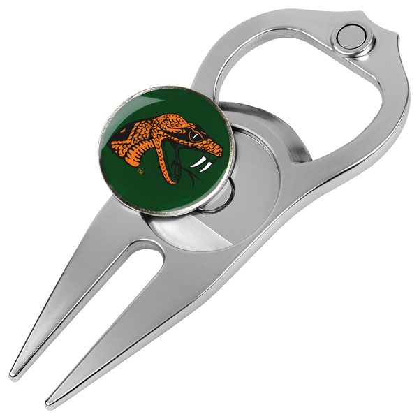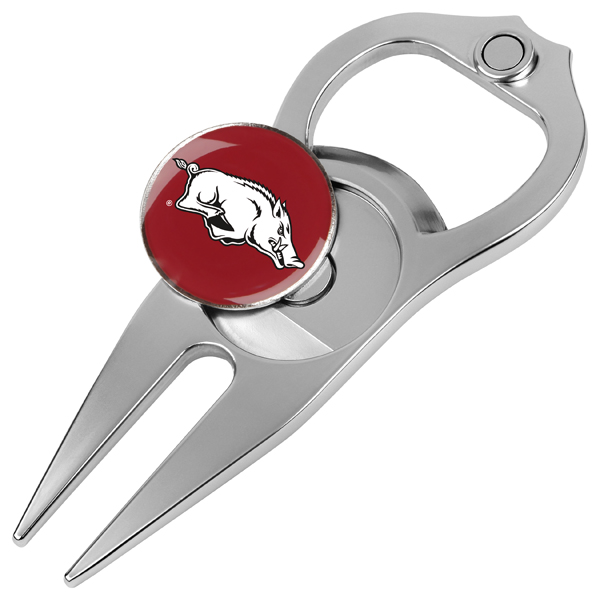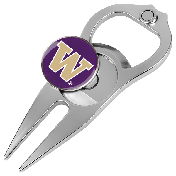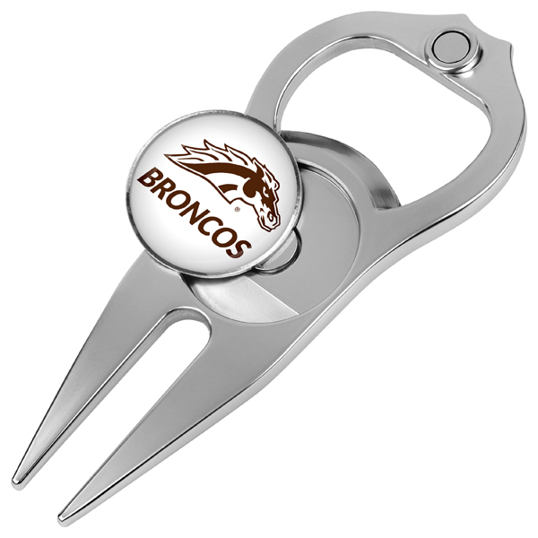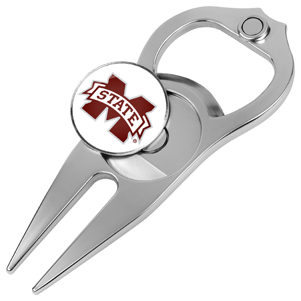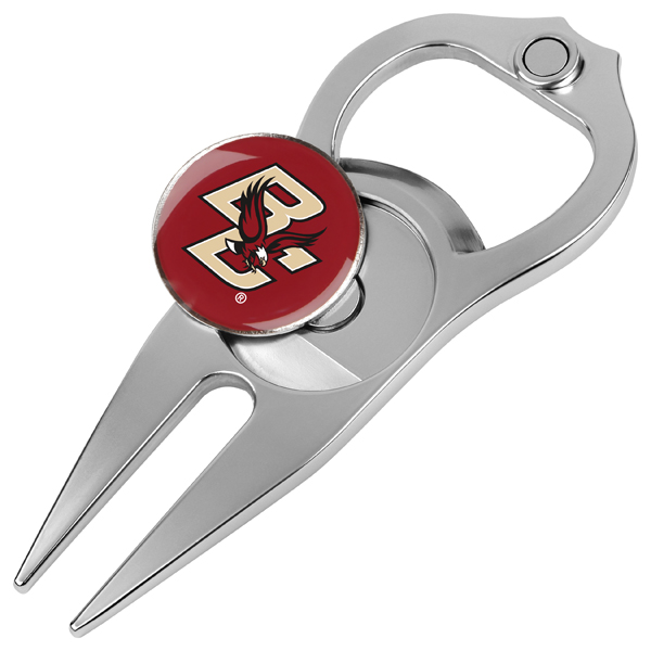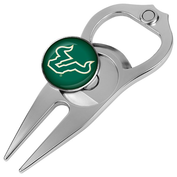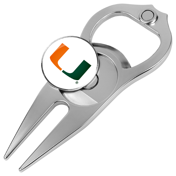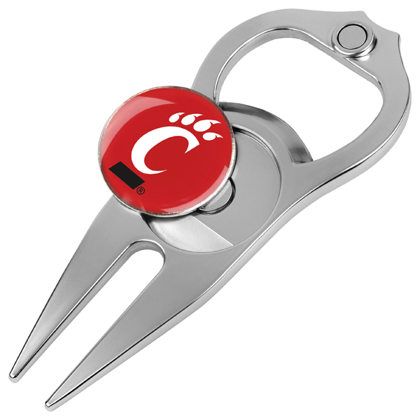 The Hat Trick Divot Tool is customized with an officially licensed magetic team ball marker with added bottle cap opener and retainer. You can even rest your club on it! Constructed from an all-metal design, the Hat Trick Divot Tool has a matte nickel finish. The top of the divot tool has a second magnet that retains the bottle cap to the tool when opening your beverage.